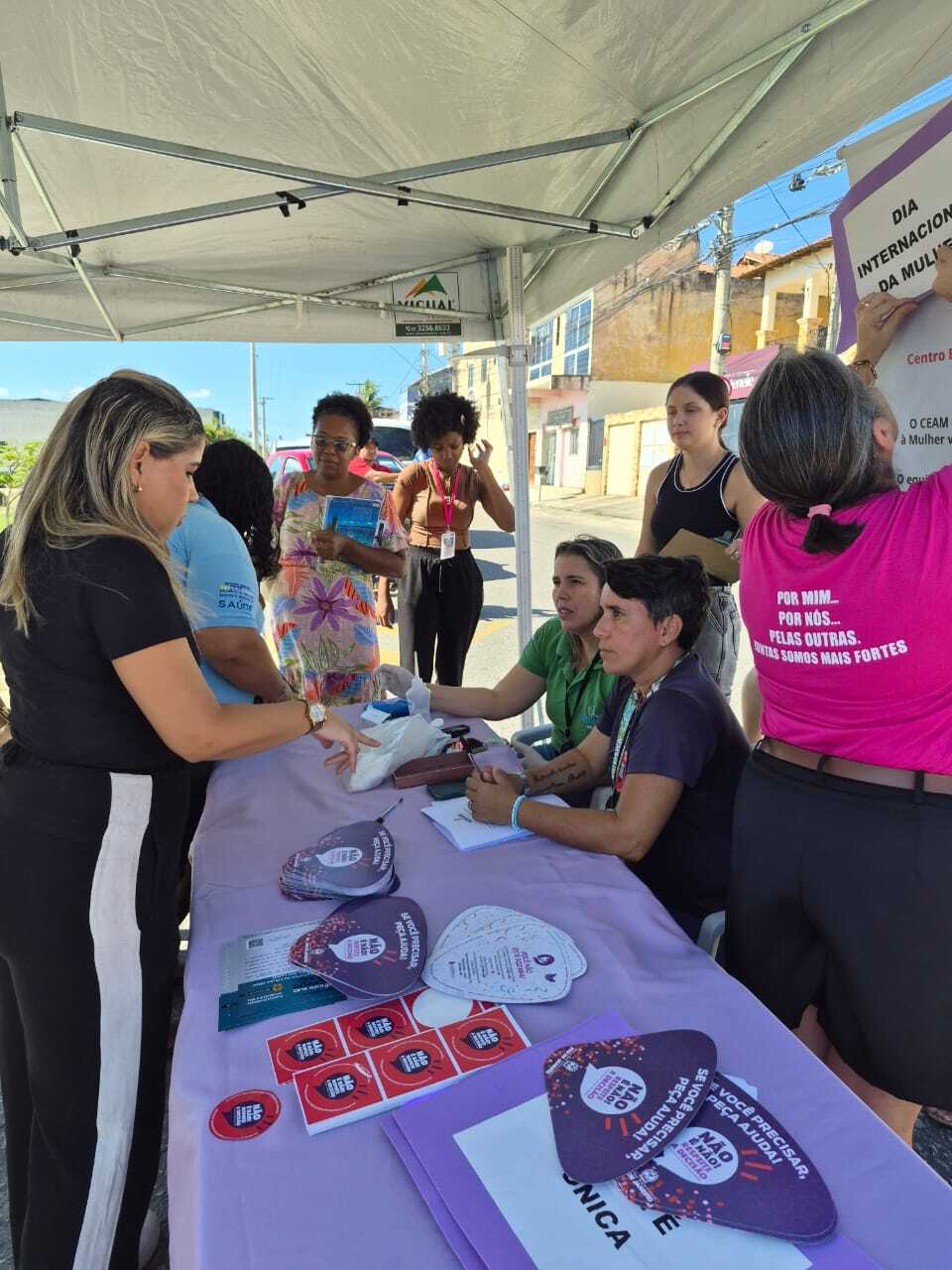 A ação buscou divulgar o trabalho do Centro Especializado de Atendimento à Mulher (CEAM Daiana Borges), por meio de uma abordagem humanizada e da distribuição de materiais informativos sobre a rede de apoio disponível para mulheres em situação de violência. As participantes receberam orientações sobre como identificar o ciclo da violência e onde buscar ajuda, além de informações para que possam apoiar outras mulheres que precisem de assistência.
