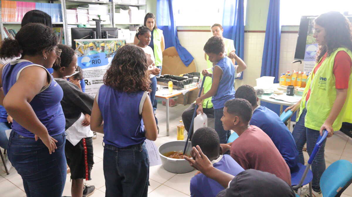Outro destaque da programação foi a oficina de produção de sabão líquido a partir do reaproveitamento de óleo de cozinha usado, promovida pelo programa Limpa Rio Comunidade, do Instituto Estadual do Ambiente (Inea). A atividade foi conduzida pelo técnico agropecuário Leandro Lima e teve como objetivo incentivar práticas sustentáveis e a destinação correta de resíduos domésticos. Além da oficina, os alunos também receberam um folheto com receita e um sabão líquido ou em barra previamente produzido pelo técnico responsável pela atividade.