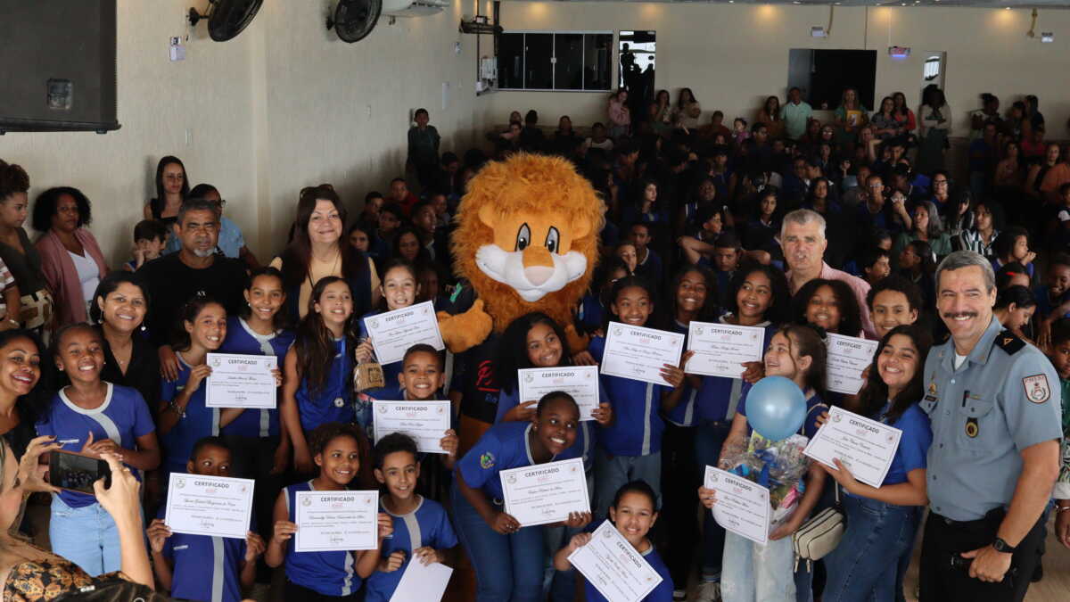Com muito entusiasmo e sentimento de conquista, alunos da rede municipal de São Pedro da Aldeia celebraram, na quinta-feira (27/11), a formatura no Programa Educacional de Resistência às Drogas e à Violência (Proerd). A iniciativa é fruto de uma parceria entre a Prefeitura, por meio da Secretaria Municipal de Educação, e o 25º Batalhão de Polícia Militar do Estado do Rio de Janeiro (PMERJ). Cerca de 270 estudantes participaram da cerimônia, representando a E. Mz. Pequiá, do bairro Rua do Fogo, E. Mz. Paulo Roberto Marinho, do São Mateus, e E. Mz. Antonio Vaz da Silva, do Recanto do Sol.