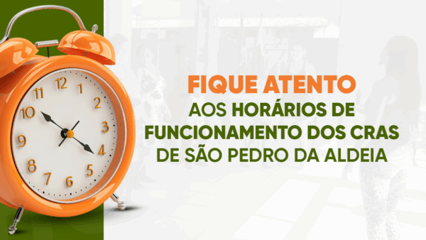 A Prefeitura de São Pedro da Aldeia informa à população os horários de funcionamento dos Centros de Referência de Assistência Social (CRAS) no município, com o objetivo de reforçar a transparência e a organização dos serviços ofertados à comunidade.