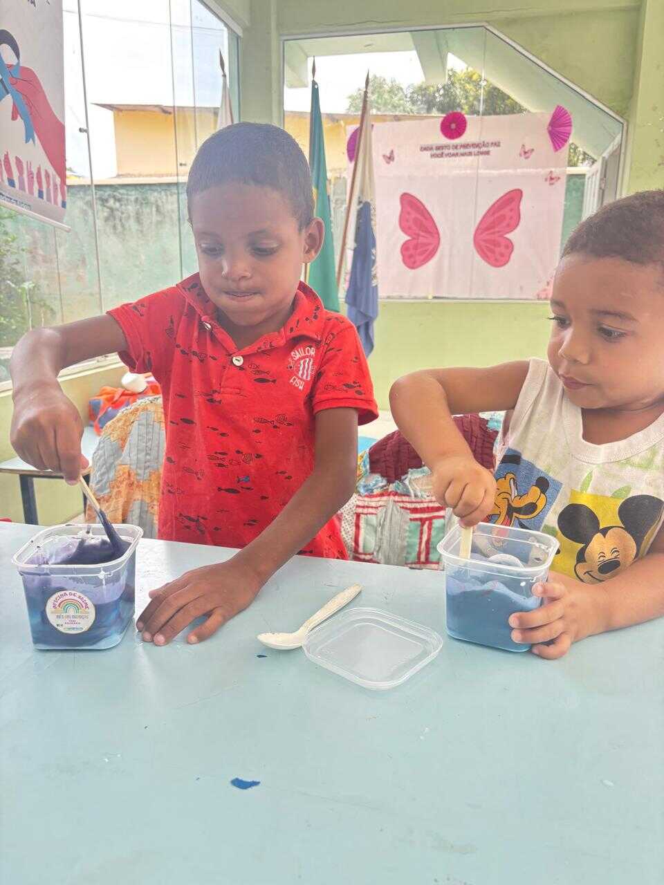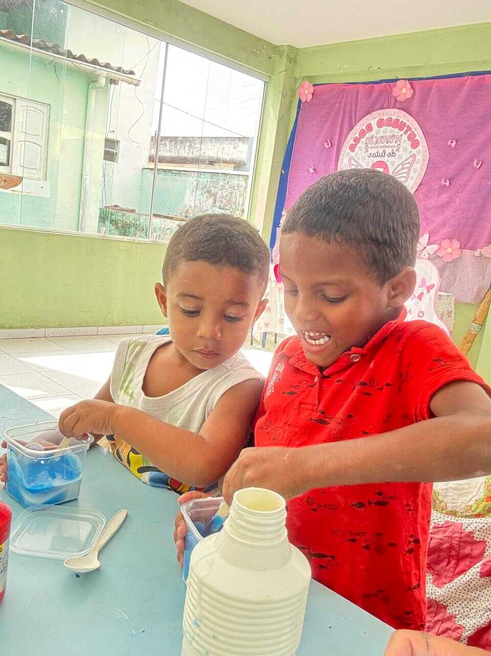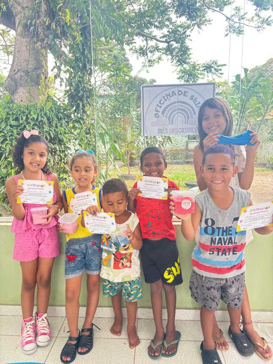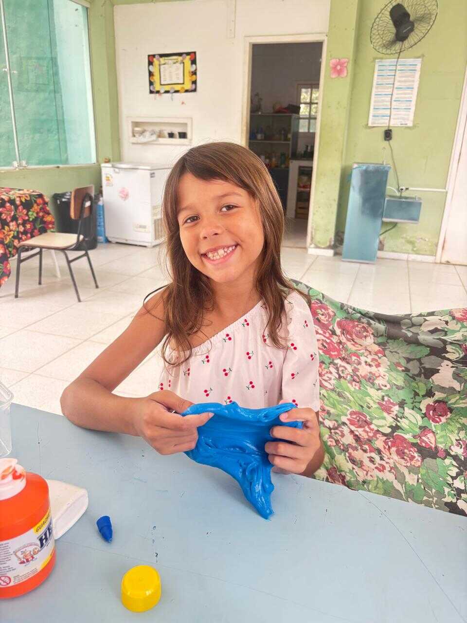 A proposta teve como objetivo proporcionar às crianças um momento lúdico e criativo, estimulando a coordenação motora, a imaginação e a socialização por meio da brincadeira. A oficina foi marcada por muita interação e entusiasmo dos participantes, que puderam produzir o próprio slime, explorando texturas e cores.