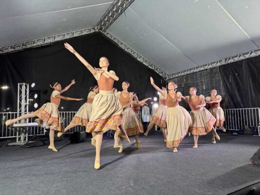Com a Casa do Papai Noel aberta, teve início a programação cultural. As primeiras apresentações ficaram por conta das crianças do Ballet Kids, que encantaram com as coreografias “Hora do Recreio” e “Petit Ballet”, criadas pelo coordenador do Ballet Municipal, Ramirez Menezes. Na sequência, as alunas da Oficina de Ballet Clássico da Escola de Artes Municipal apresentaram a montagem “Ballet Armorial”, idealizada pelo instrutor Diego Vivas e inspirada na estética armorial.