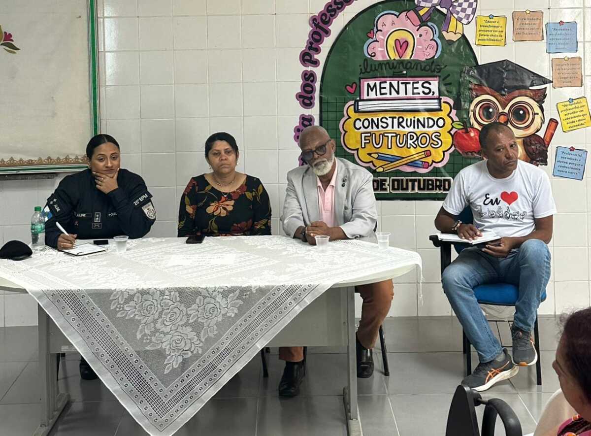 Também participaram da reunião o vice-presidente do CCSE, Alex Bruno Gonçalves Alves, a orientadora educacional Rute Orrac, a inspetora escolar Iozália Rangel Leite, a assistente social Jéssica Moura, as diretoras Carolyne Felício Cardoso e Gabriella Pessoa Carvalho, o advogado Sérgio Ricardo S.Peniche e as representantes da Patrulha Escolar (25º BPM), Sgt Viviane e Cabo Andréa