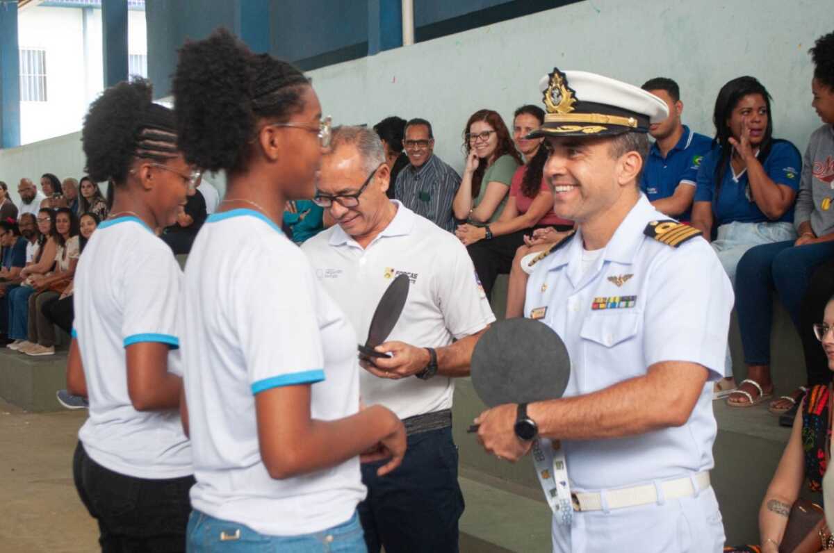 A Escola Municipal Professora Miriam Alves de Macedo Guimarães – Cívico-militar, localizada no bairro Fluminense, em São Pedro da Aldeia, recebeu a visita de dois comandantes de organizações militares da Marinha do Brasil. Os encontros reforçaram a parceria entre a instituição de ensino e as organizações militares instaladas no município aldeense. As visitas tiveram o objetivo de promover novas experiências educativas e culturais aos estudantes, além de estreitar os laços entre a comunidade escolar e o meio militar.