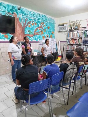 Para o 7º ano, a equipe de Vigilância em Saúde promoveu atividades sobre saúde ambiental. Foram abordados temas como prevenção da dengue, esporotricose e cuidados com pombos, reforçando a importância da prevenção. As alunas do 8º e 9º anos participaram de uma palestra sobre saúde sexual e reprodutiva, com informações sobre o corpo, autocuidado e prevenção.