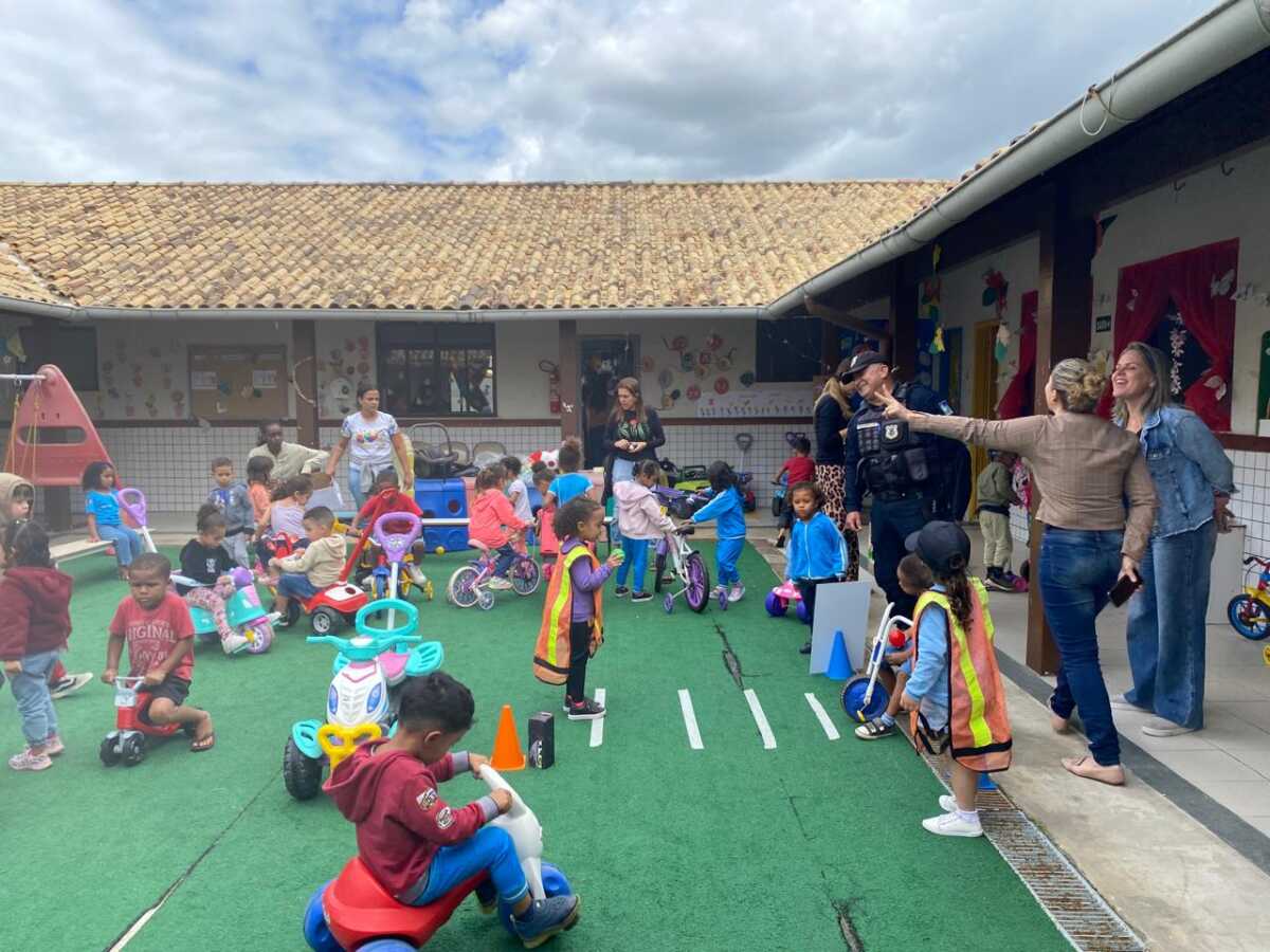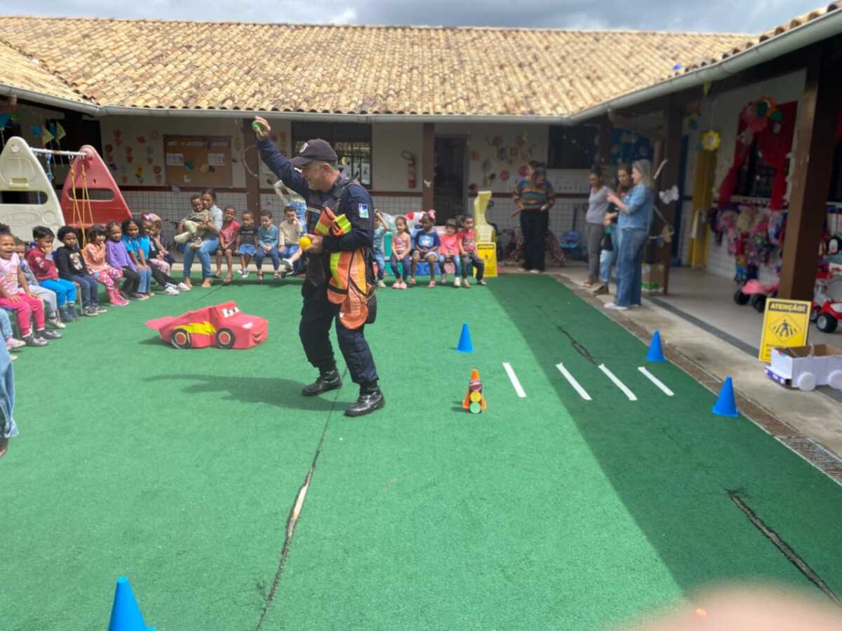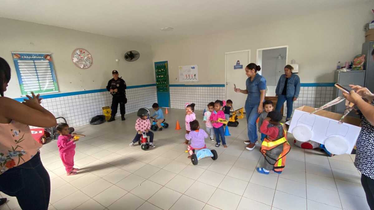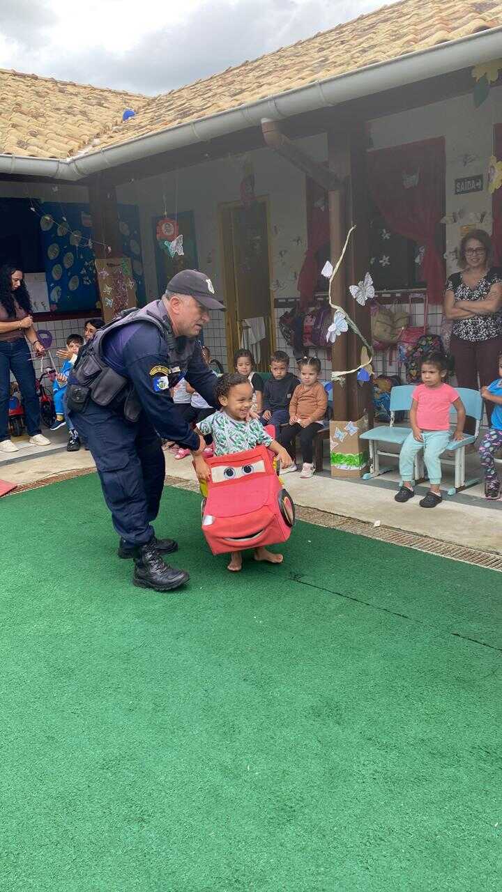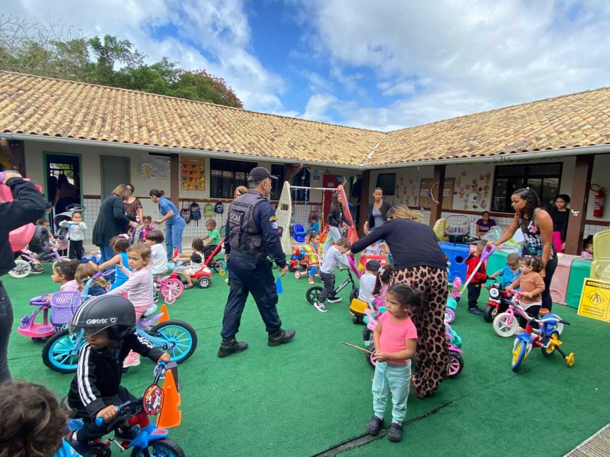 Na Creche Dona Chica, no bairro Morro do Milagre, os agentes da Guarda Civil Municipal participaram de atividades alusivas à Semana Nacional do Trânsito. De forma lúdica e interativa, as crianças aprenderam sobre a importância do respeito às leis de trânsito e da convivência segura nas vias públicas.