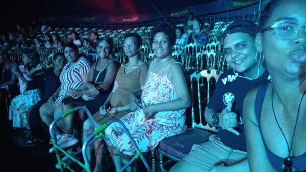 Os moradores do Serviço de Residência Terapêutica (SRT) de São Pedro da Aldeia participaram de uma atividade cultural no Circo Vostok. A ação contou com o acompanhamento da técnica de enfermagem, Tainara Cristina Ventura, e da cuidadora do serviço, Luiza Parett. A iniciativa fortalece o pertencimento à comunidade e a ocupação dos territórios da cidade como estratégia de cuidado em liberdade.