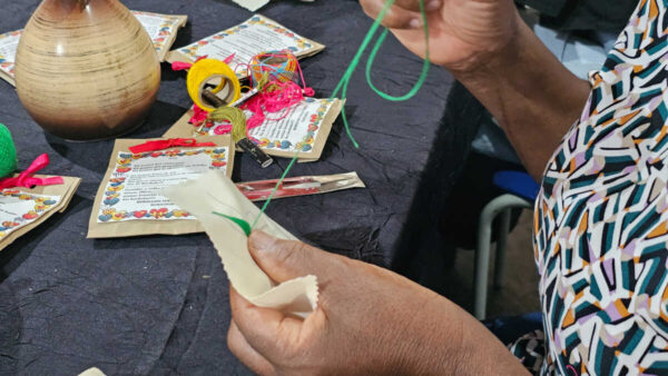 A oficineira Rosângela Guimarães, que dividiu a condução das aulas com a artesã Rita Bittencourt, falou sobre a iniciativa. “Estes pontos são considerados bobinhos, mas, na verdade, é a partir deles que conseguimos fazer as nossas artes. A gente se sente gratificada porque as pessoas gostam, pois, para muitas delas, é uma terapia, um momento de conversa. Agradecemos o convite da Secretaria de Cultura”, afirmou.