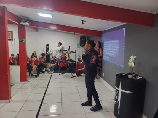 A atuação do grupamento também chegou à Escola Albert Einstein, no município de Cabo Frio, onde alunos e equipe escolar participaram de uma palestra educativa sobre prevenção da violência, respeito e valorização da mulher na sociedade.