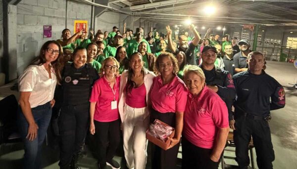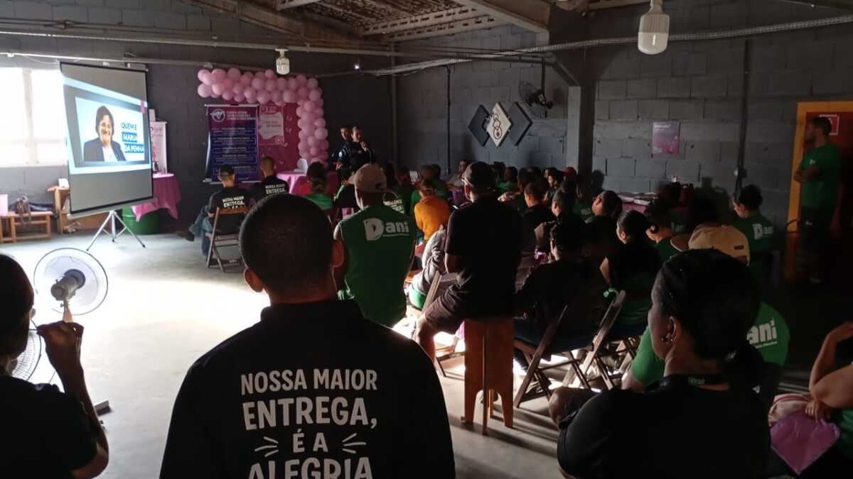 A Patrulha Maria da Penha da Guarda Civil Municipal realizou mais uma palestra de conscientização em São Pedro da Aldeia. A ação foi realizada na quinta-feira (23/10) a convite da empresa de descartáveis e artigos de festa, Dani Embalagens, e abordou o enfrentamento à violência doméstica e familiar contra a mulher. A iniciativa integra a programação do “Outubro Rosa”, mês dedicado à conscientização sobre a saúde da mulher e à prevenção do câncer de mama, e contou também com a participação do projeto Amigas da Mama, que falou sobre a importância do autocuidado e do diagnóstico precoce.