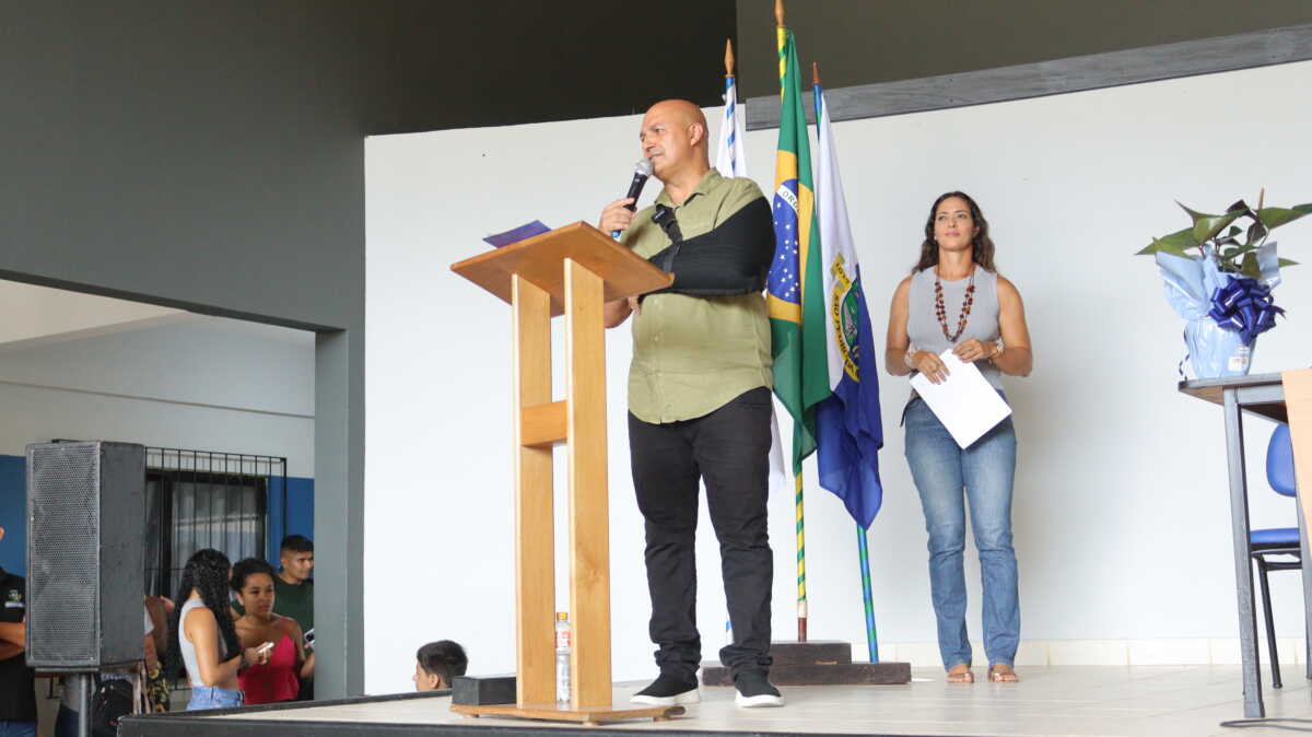 A cerimônia contou com momentos de homenagens da direção da escola ao prefeito Fábio do Pastel, à secretária de Educação e vereadores. Fábio também aproveitou para entregar uma lembrança às servidoras da unidade. Uma das homenageadas foi a dirigente Vania Lúcia Andrade, que trabalha na escola desde a fundação.