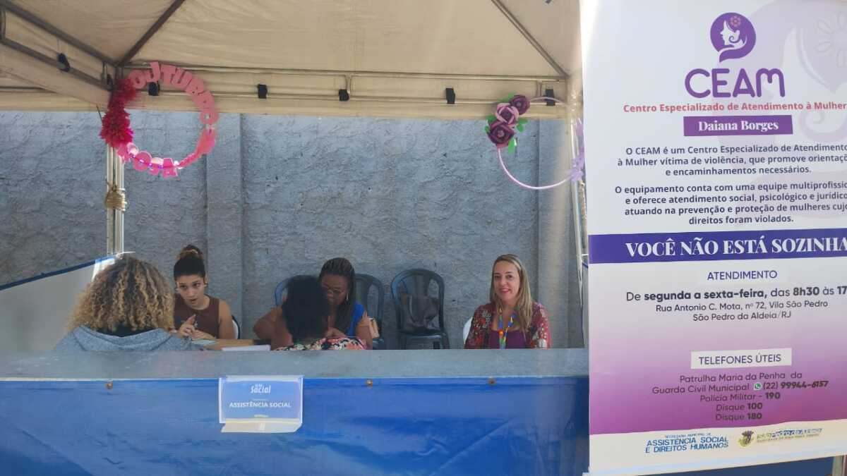 A Secretaria de Assistência Social e Direitos Humanos de São Pedro da Aldeia marcou presença em uma ação no bairro Alecrim. A iniciativa foi promovida pela Igreja Assembleia de Deus – Tempo de Colher, de forma aberta ao público. Na ocasião, a equipe multiprofissional do Centro Especializado de Atendimento à Mulher (CEAM Daiana Borges) ofereceu atendimentos sociais, psicológicos, jurídicos e de apoio para mulheres em situação de vulnerabilidade. O evento também contou com a participação da equipe do CRAS Alecrim.