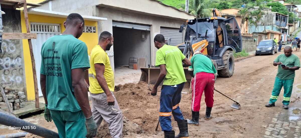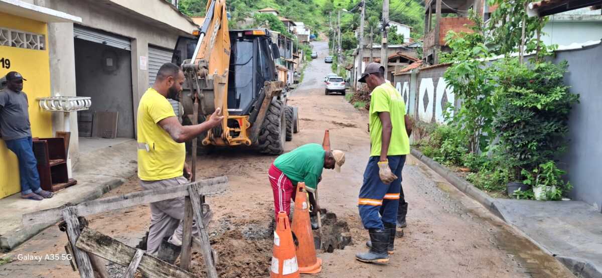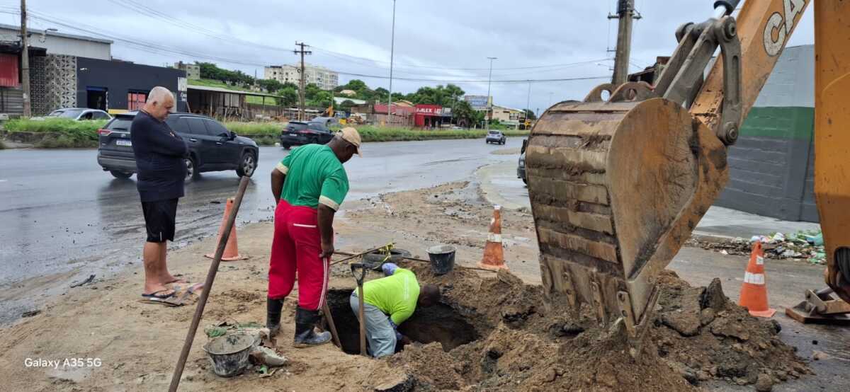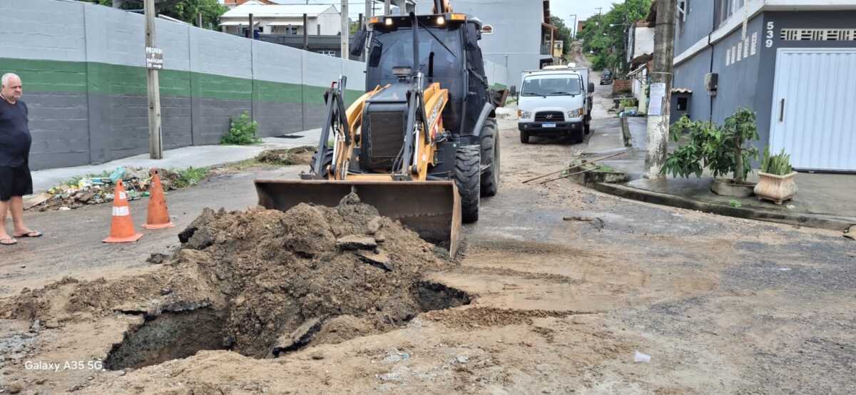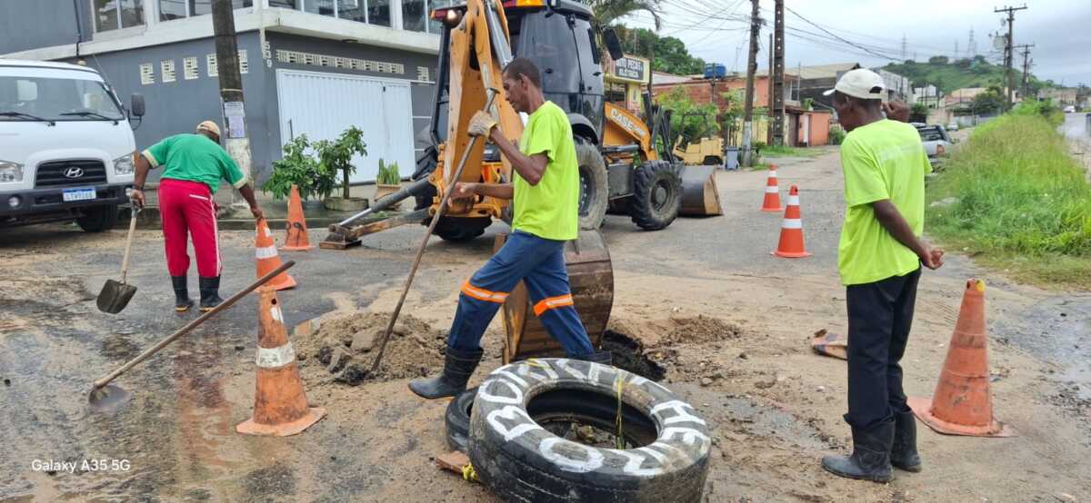 Os trabalhos incluem a retirada das estruturas comprometidas e a substituição por novas manilhas, garantindo o correto funcionamento do sistema de drenagem e contribuindo para evitar novos transtornos causados pelo acúmulo de água nas vias.