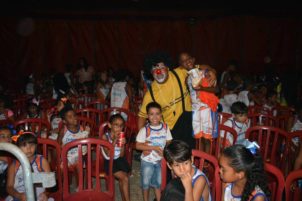 Durante a visita, que marcou o início da penúltima semana de atividades do projeto aldeense, o coordenador Dothavio subiu ao picadeiro como o palhaço Defesinha e fez a festa da garotada. Ao final da apresentação, foi puxado o grito de guerra do projeto. “A apresentação do palhaço Defesinha foi a grande surpresa; uma ideia nossa para homenagear e demonstrar todo o carinho que temos com as crianças do projeto”, completou Marcus Dothavio.