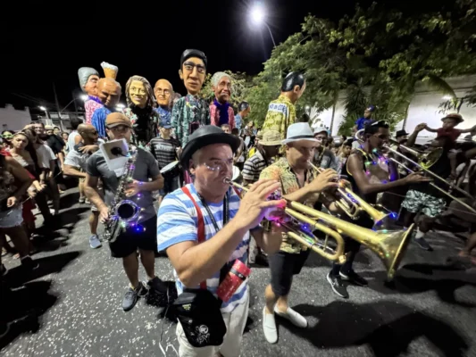 A Banda de Fanfarra “Tamo Junto” também estará presente em outro ponto da cidade. De sábado (14/02) a segunda-feira (16/02), os músicos se apresentam na Rua Amélio Soares dos Santos, no Baixo Grande, sempre das 19h às 20h30, ampliando a programação e fortalecendo a tradição das marchinhas.