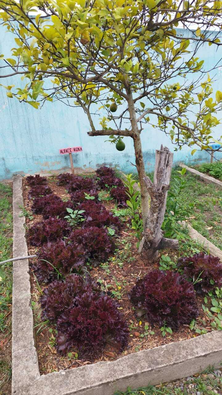 Criação e manutenção de hortas pedagógicas com hortaliças, plantas nativas e temperos. A horta se tornou espaço vivo para aulas práticas de Ciências, Matemática (medição, quantidades, formas) e Língua Portuguesa (relatórios e textos descritivos), além de incentivar alimentação saudável e cuidado com a natureza.