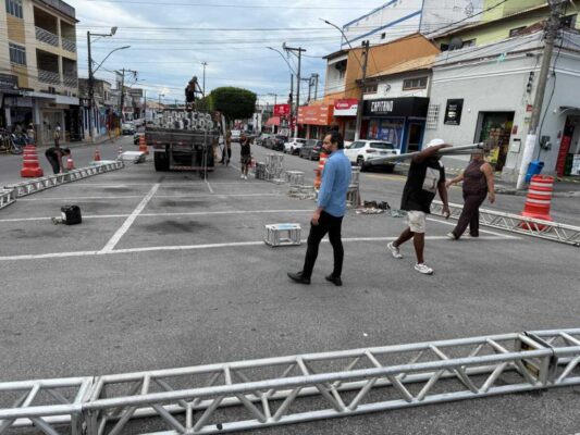 São Pedro da Aldeia já vive o clima do Carnaval 2026. O município está em ritmo acelerado de preparação para receber a festa, que neste ano tem como tema “Aldeia na Folia”, celebrando a cultura popular, a alegria e a identidade aldeense. A estrutura do palco principal, que ficará montado em frente à Praça Agenor Santos (Praça da Igreja Matriz), começou a ser instalada nesta terça-feira (10/02). Quem passa pelo Centro também já pode conferir os banners instalados nos postes com a identidade visual do evento, espalhados pelas principais vias e reforçando o clima festivo na cidade.