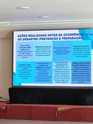 A diretora das Proteções Sociais Básica e Especial da SASDH, Elba Mascarenhas, comentou sobre o evento. “Essa oficina foi de extrema importância, pois conseguimos visualizar possíveis riscos de desastres ambientais, sociais e de saúde pública. Cabe destacar que é uma atuação intersetorial, onde devemos mobilizar todas as pastas do município, visando prevenção, monitoramento e planejamento para atuarmos em tais situações”, afirmou.