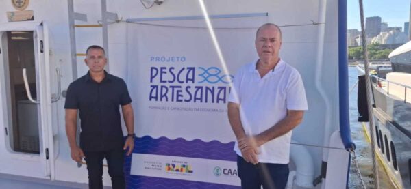 São Pedro da Aldeia marcou presença no lançamento do Projeto Pesca Artesanal – Formação e Capacitação em Economia da Água, da Cooperativa Agroambiental do Brasil (CAAB), por meio de Termo de Fomento com o Ministério da Pesca e Aquicultura (MPA). O evento foi realizado no Navio Oceanográfico da Universidade do Estado do Rio de Janeiro (UERJ), na Marina da Glória, no Rio de Janeiro. Representando o prefeito Fábio do Pastel, estiveram presentes o secretário municipal de Meio Ambiente e Pesca, Mario Flavio Moreira, e o secretário adjunto da pasta, Breno dos Santos. Na ocasião, também foi divulgado o programa “Gente das Águas”.