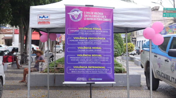A atividade aconteceu na Praça Plínio de Assis Tavares, conhecida como Praça do Canhão, no Centro da cidade, onde moradores e visitantes receberam orientações e materiais informativos sobre prevenção e enfrentamento à violência doméstica. A proposta foi ampliar o acesso à informação e fortalecer a rede de apoio às mulheres, destacando os canais disponíveis para acolhimento e denúncia.