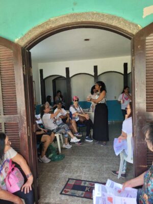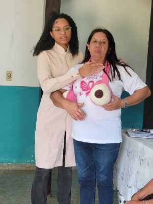 A programação reforçou o direito das mulheres à saúde e bem-estar, além de promover a conscientização sobre o câncer de mama. A atividade contou com a participação da coordenadora generalista e coordenadora da Saúde do Homem, Fernanda Rocha Feio de Carvalho, que abordou o tema “Cuidar de si também é um direito social”, e da enfermeira da UBS do Porto da Aldeia, Caroline Claudino da Silva, que orientou sobre prevenção, exames e acompanhamento médico.