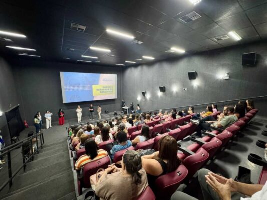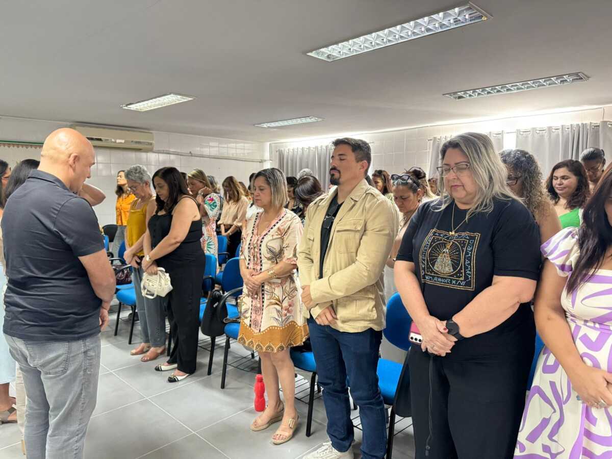 A programação teve início no Centro de Formação Continuada (CEFOR), sede da SEMED, com um café da manhã preparado para receber os gestores escolares. Em seguida, o grupo participou de um momento de integração no Cine São Pedro, que contou com a presença das secretárias de Educação, Danielle Corrêa; de Saúde, Maria Márcia Fontes; e de Assistência Social e Direitos Humanos, Aline Manhães, além de servidores das respectivas pastas.