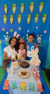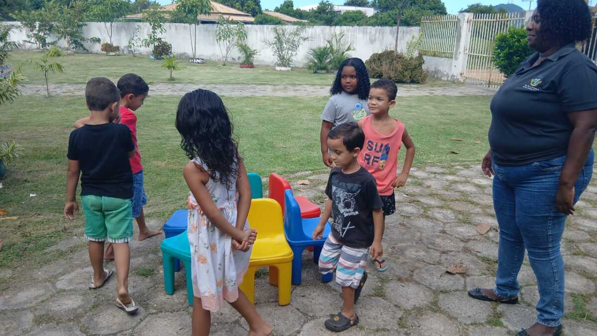A programação contou com roda de conversa sobre o significado da Páscoa, além de atividades lúdicas, brincadeiras temáticas e distribuição de lembranças para as crianças, que também participaram de momentos de dança e integração. As dinâmicas propostas estimularam a participação ativa dos pequenos, contribuindo para o desenvolvimento social e motor.