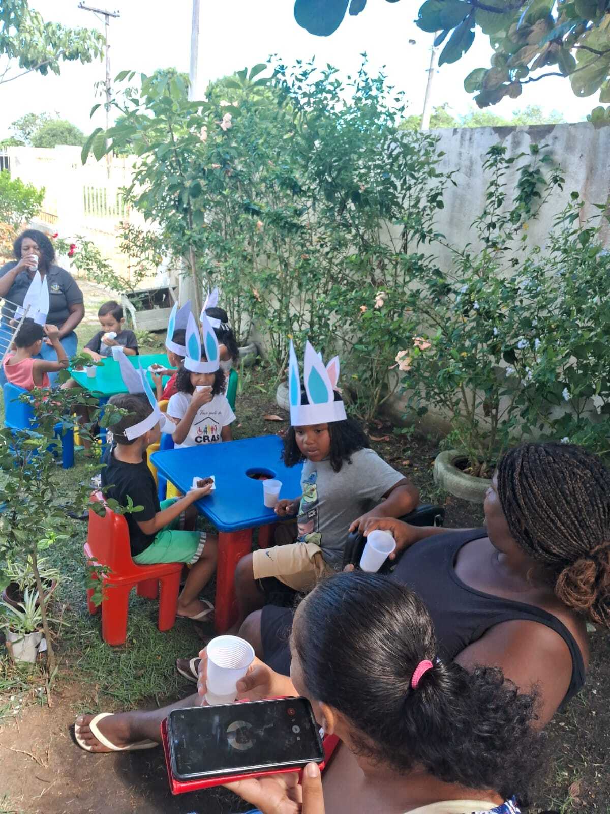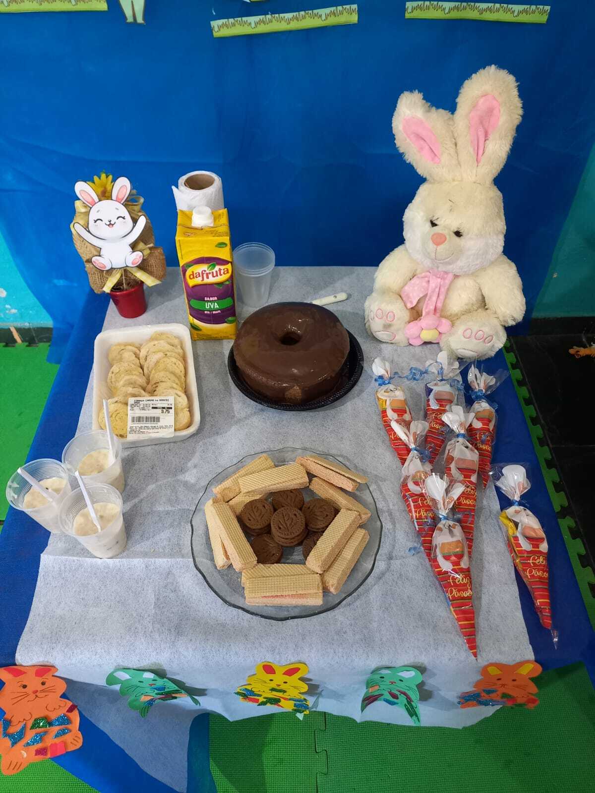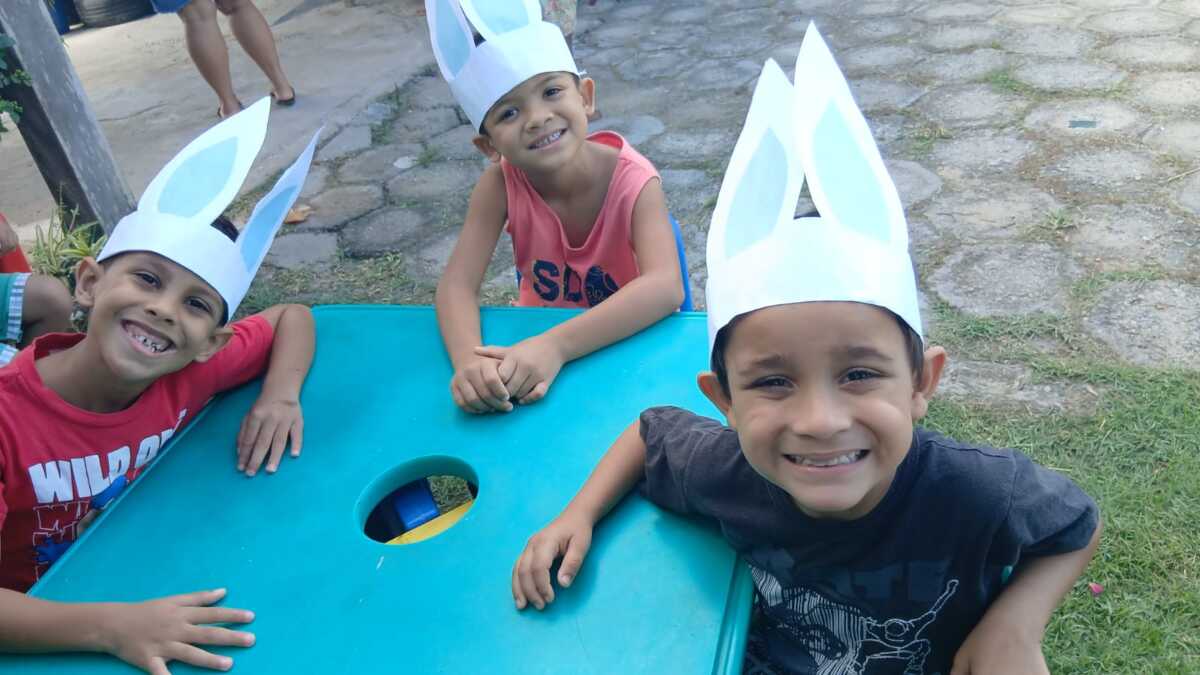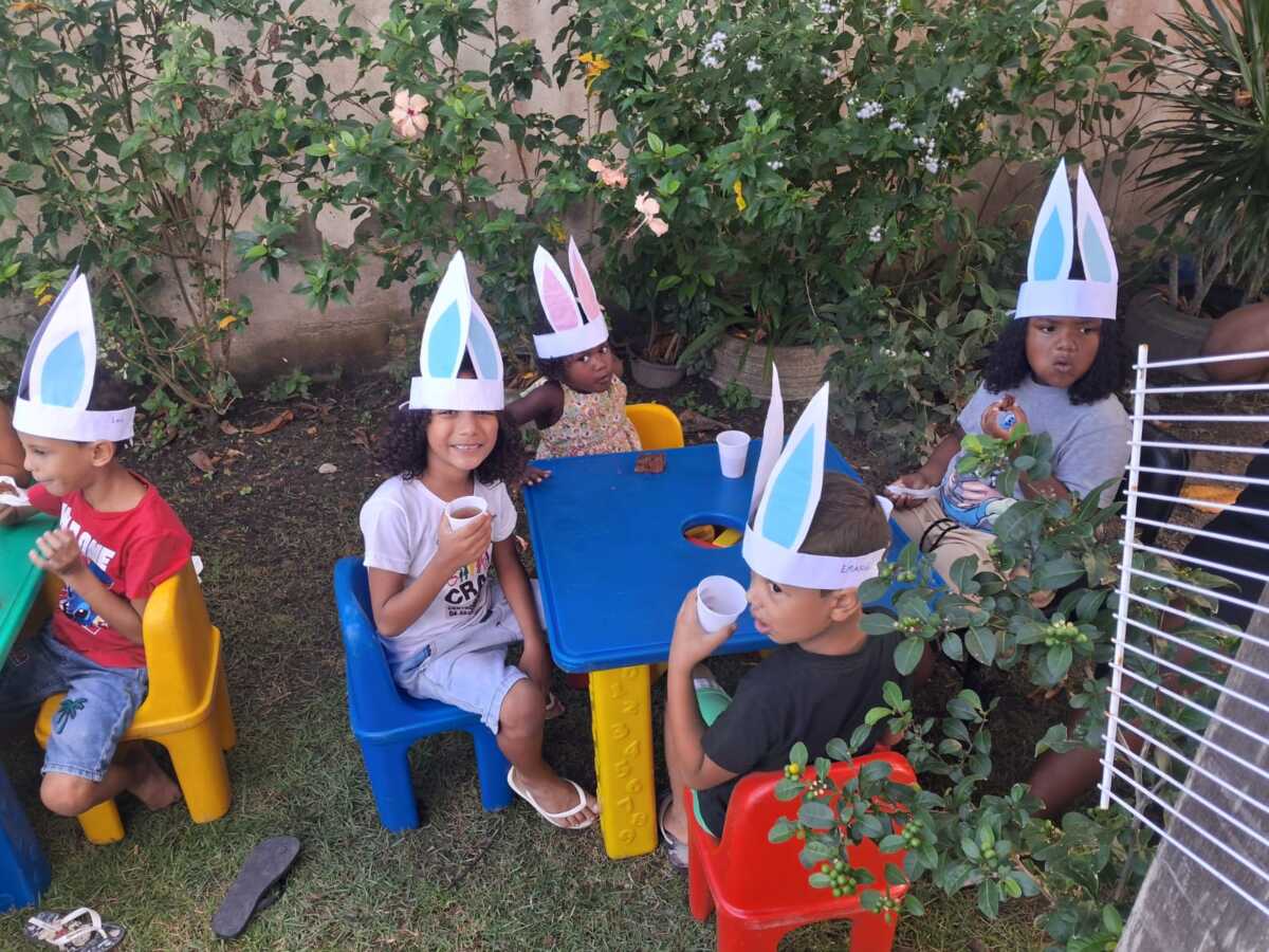 A programação contou com roda de conversa sobre o significado da Páscoa, além de atividades lúdicas, brincadeiras temáticas e distribuição de lembranças para as crianças, que também participaram de momentos de dança e integração. As dinâmicas propostas estimularam a participação ativa dos pequenos, contribuindo para o desenvolvimento social e motor.